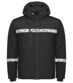 - Glugă detașabilă, reglabilă în două moduri: cu șnur în față și cu un sistem de vizor (vire) la spate.