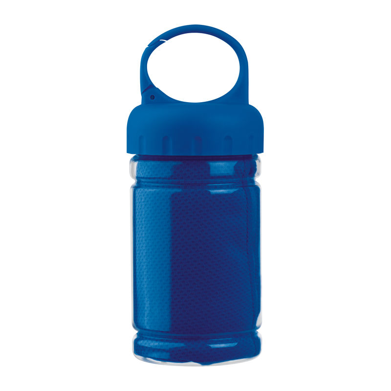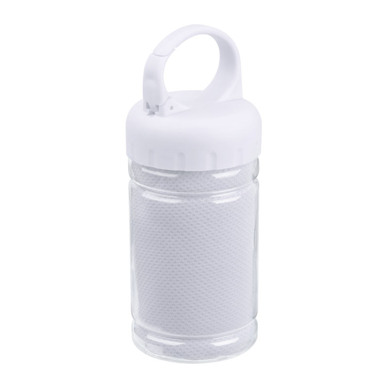 Un partener excelent pentru sport! Prosop din microfibră ambalat într-o sticlă din plastic, prevăzută cu mâner tip carabină. Dimensiunea prosopului: 79 × 29 cm.